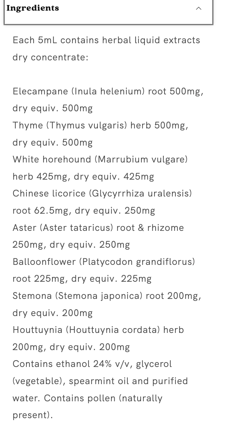 Fusion Cough Lung Tonic Liquid is traditionally used to relieve dry coughs and known as an expectorant for easing coughing and mild upper respiratory tract congestion in Western herbal medicine.
